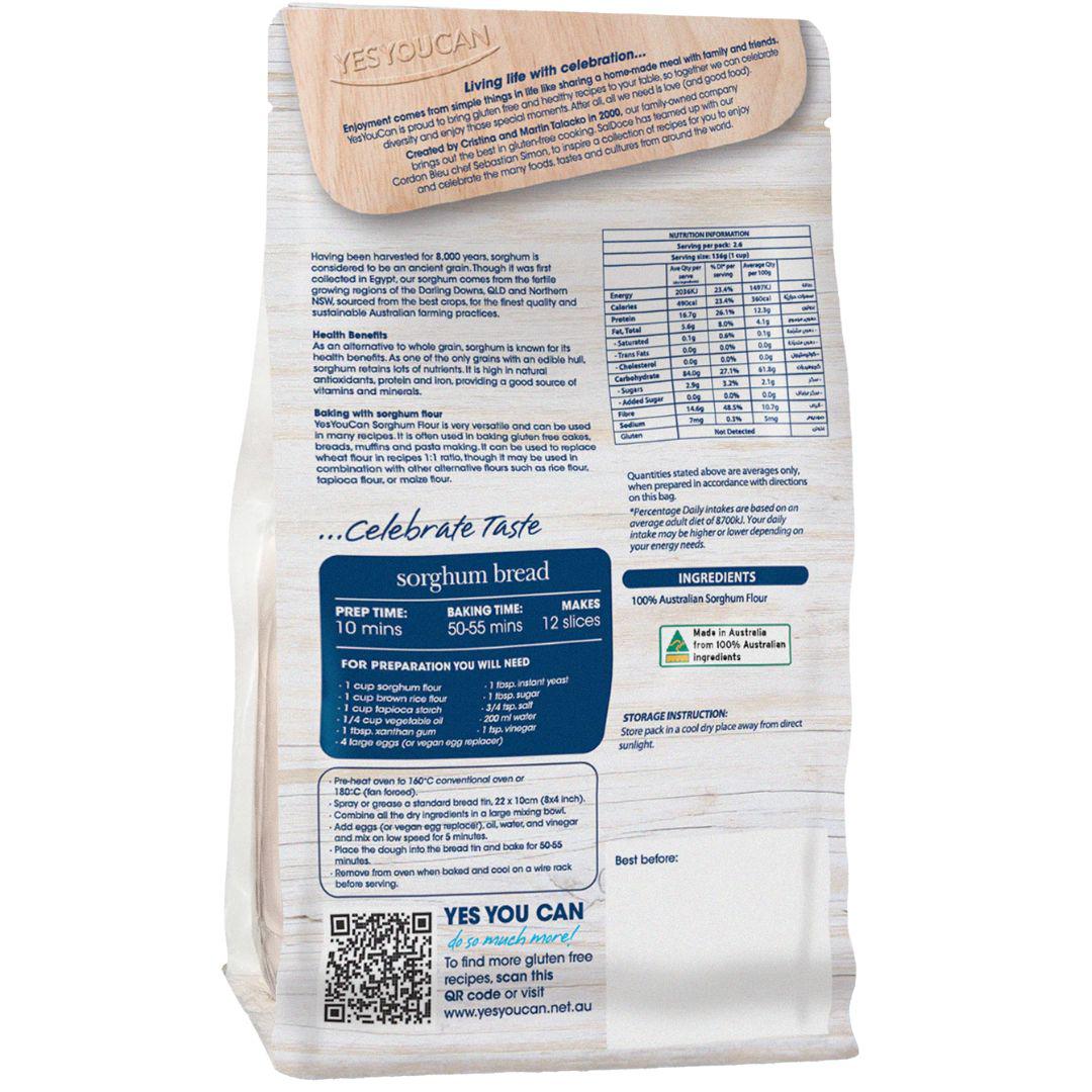 YesYouCan Sorghum Flour is made with high-quality, sustainably-sourced sorghum flour from Darling Downs, Queensland and Northern New South Wales. Enjoy the naturally gluten-free flavour of ancient grain sorghum, cultivated for 8,000 years since its origin in Egypt.
