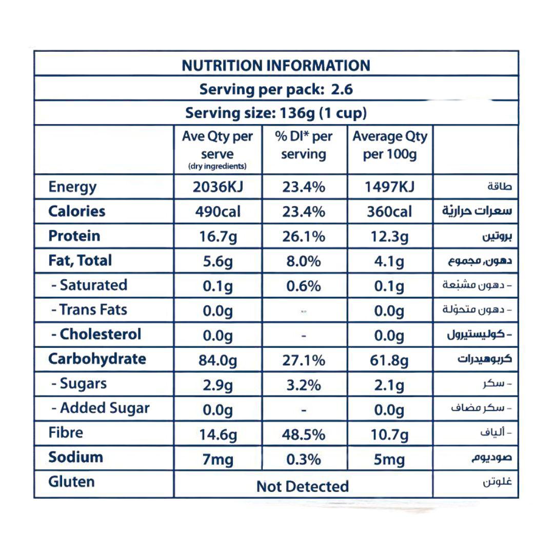 Serving size: A 136g serve (1 cup) is low FODMAP, 2.6 serves per 350g pack.