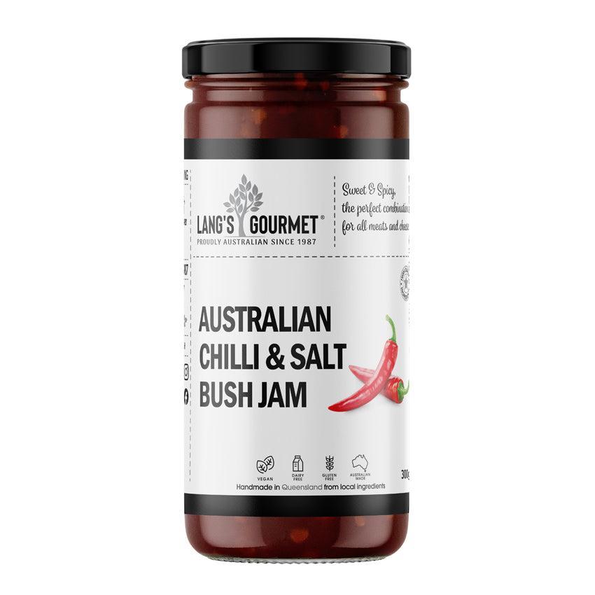 Discover the ideal balance of sweet and spicy with Lang's Gourmet Chilli Jam & Salt Bush. Enhance the taste of all meats and cheeses, or add a delicious twist to dips, hot chips, roasted vegetables, and quiches.
