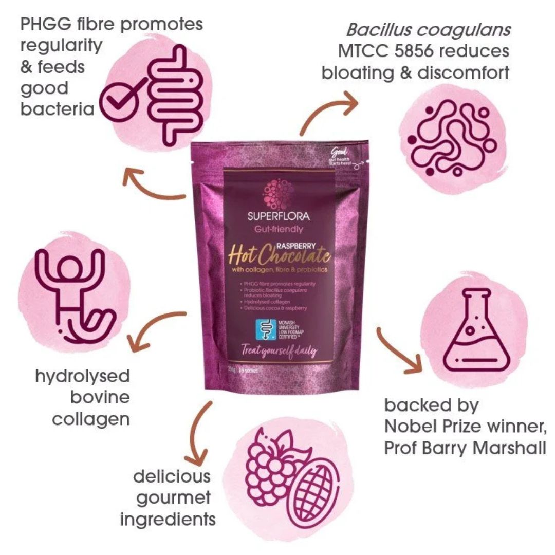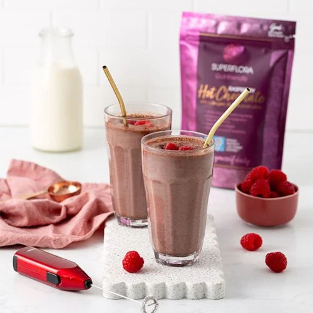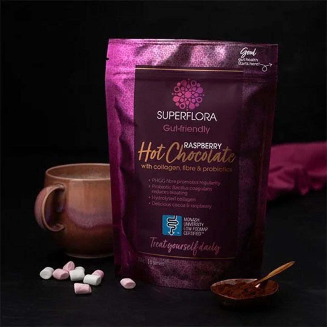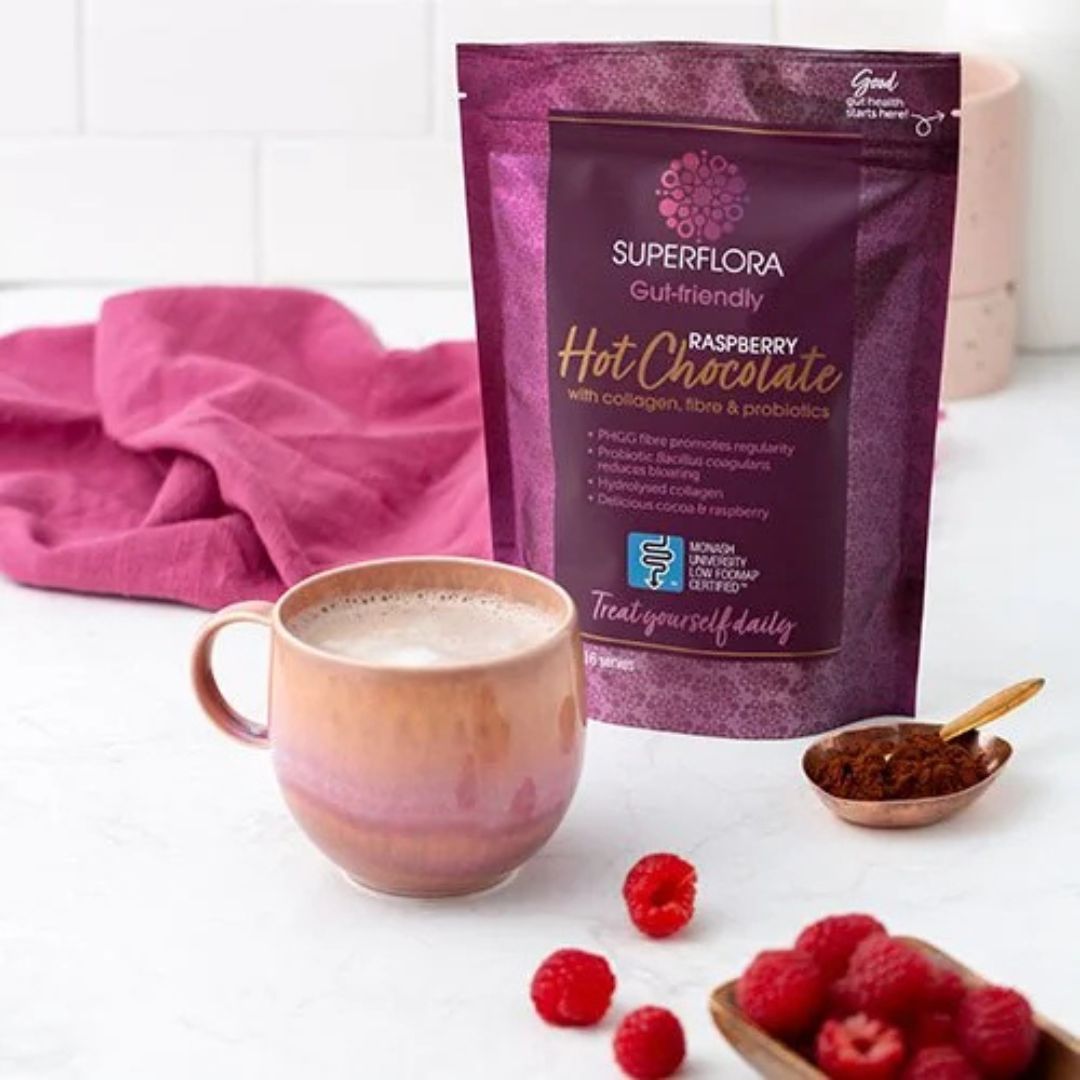 Enjoy a tasty Raspberry Hot Chocolate that supports your digestive health, enriched with collagen for added wellness benefits.