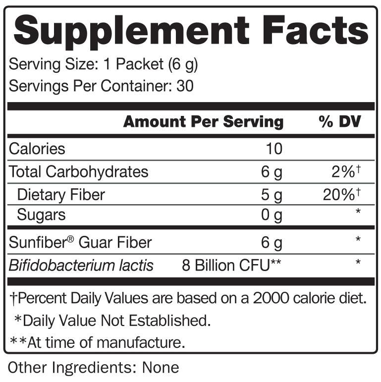 • Contains 5 grams of prebiotic fiber (Sunfiber®) and 8 billion active probiotics (Bifidobacterium lactis).