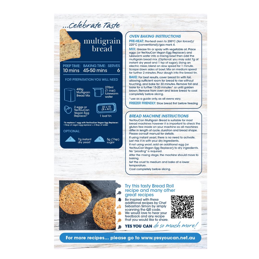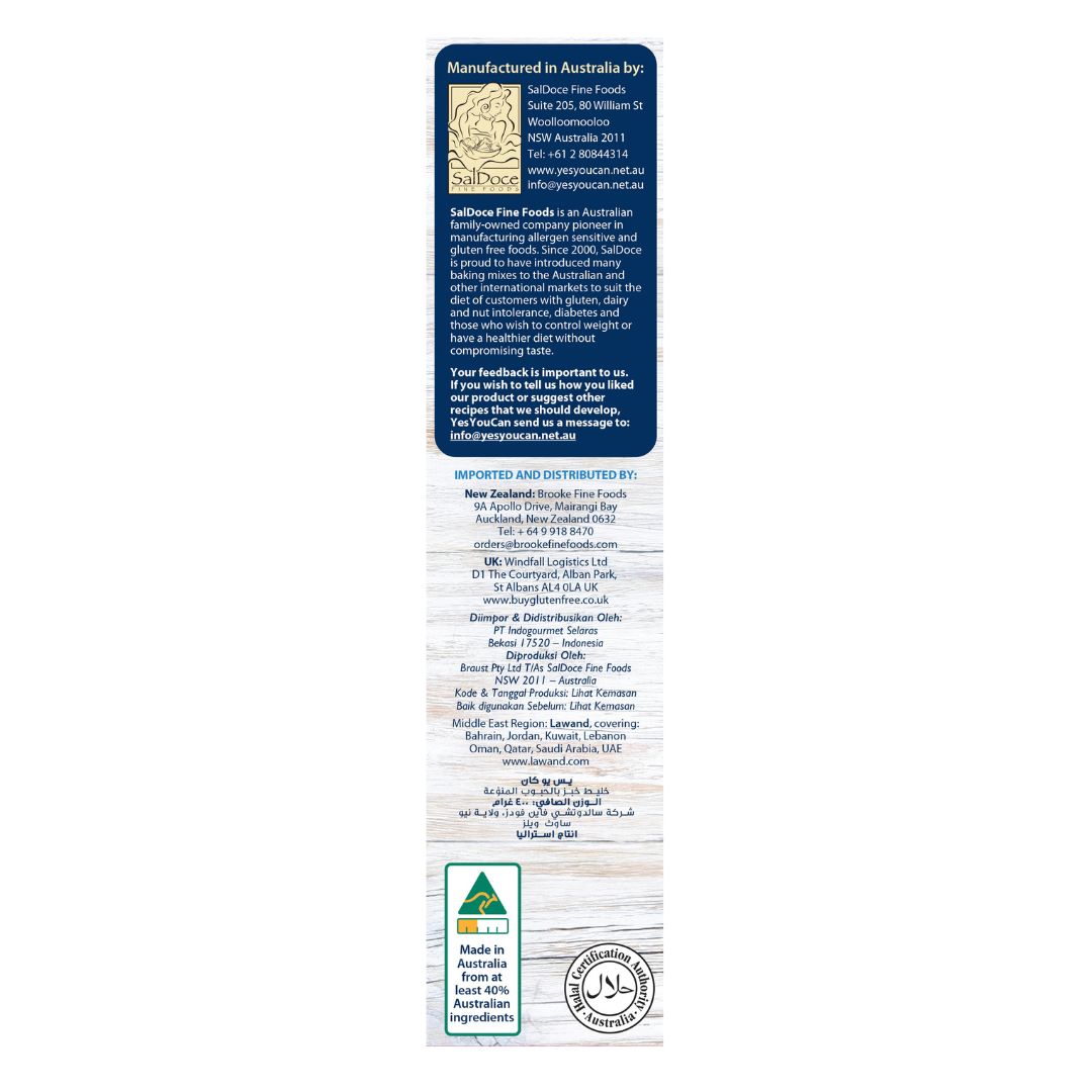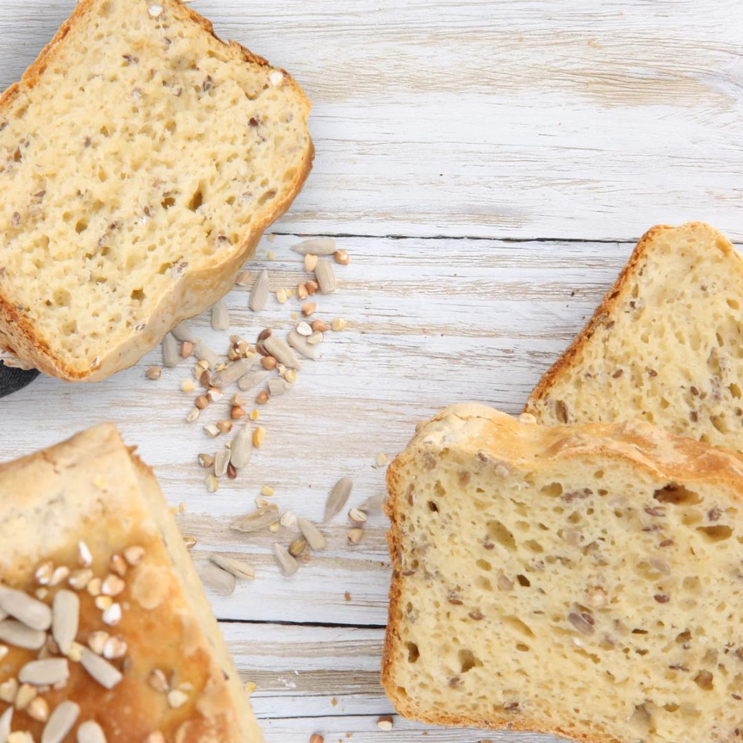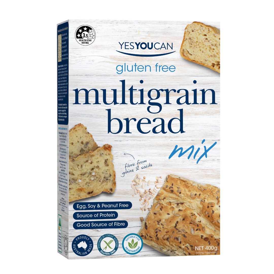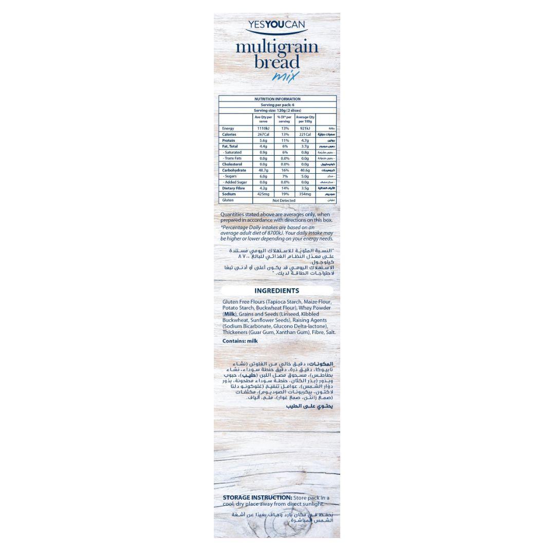 Ingredients: Gluten Free Flours (Tapioca Starch, Maize Flour, Potato Starch, Sorghum Flour, Quinoa Flour), Grains and Seeds 11% (Linseed, Kibbled Buckwheat, Sunflower Seed), Whey Powder (From Milk), Raising Agents (Sodium Bicarbonate, Glucono Delta-lactone), Thickeners (Guar Gum, Xanthan Gum), Skim Milk Powder, Maltodextrin (Maize), Fibre, Salt